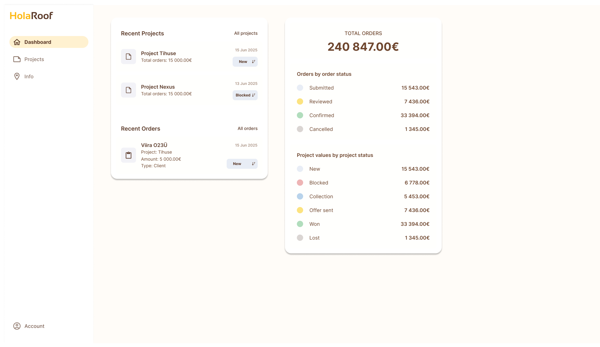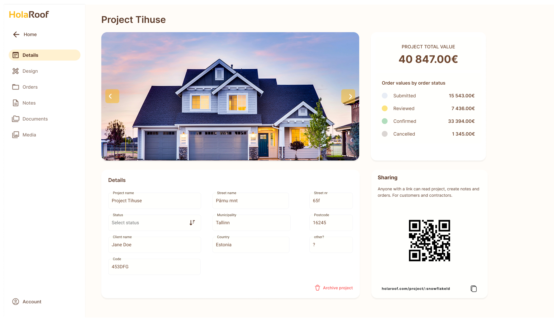 We delivered a full-stack digital platform from greenfield that digitizes the entire roofing project lifecycle—from visual design through material calculation to order fulfillment and client collaboration.