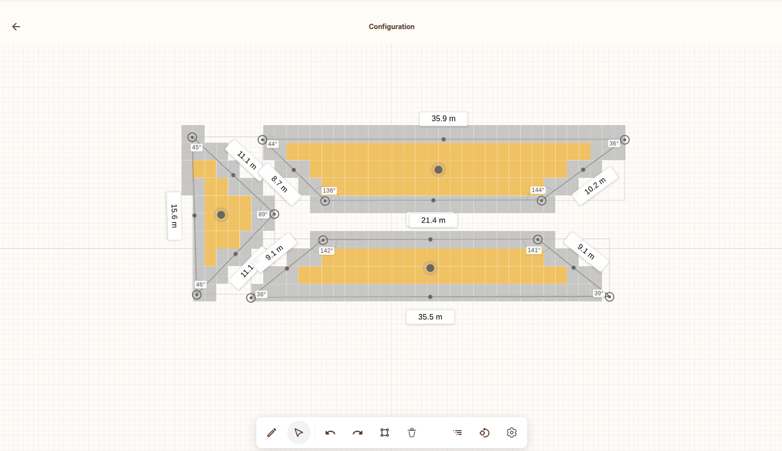 Interactive Design Canvas: A Figma-like tool directly in the browser. Users visually create and edit roof configurations using intuitive drawing tools, removing the need for complex CAD software.